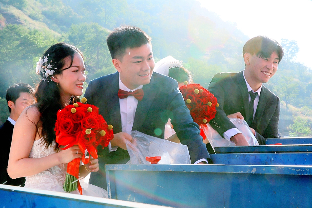 17對(duì)新人還一同前往觀音巖水電站營(yíng)地植樹,栽樹、培土、澆水,現(xiàn)場(chǎng)熱鬧非凡。“今天,我們一起種下‘幸福樹’,希望我們共同成長(zhǎng)、相互扶持、相互依偎、兩情繾綣。”來(lái)自芒里水電站的陳曉東、周穎夫婦攜手種下小樹苗,并許下美好的心愿。
