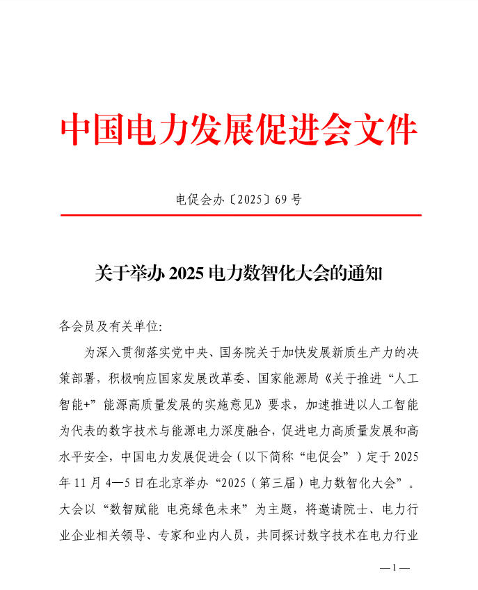 關(guān)于舉辦2025電力數(shù)智化大會的通知