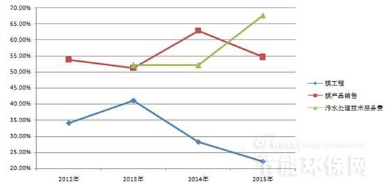 以津膜科技為例,膜產(chǎn)品銷售毛利率遠高于膜工程業(yè)務
