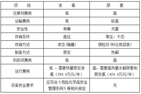兩種還原劑在安全性和經(jīng)濟(jì)性上各有優(yōu)勢,采用尿素作為還原劑是比較安全的,但初期投資造價高,運行費用也高;采用液氨作為還原劑,相對初期投資造價低,運行費用低,但液氨作為重大危險源,在運輸和儲備時存在一定的安全隱患,在運輸成本上以及在生產(chǎn)安全管理上對電廠的運行水平要求較高,存在一定的危險性。因此從經(jīng)濟(jì)或運行維護(hù)成本考慮,還原劑可以選擇液氨,但從安全角度考慮,則應(yīng)選擇尿素,中能自備電廠綜合考慮各種因素最終選擇尿素是較好的選擇。