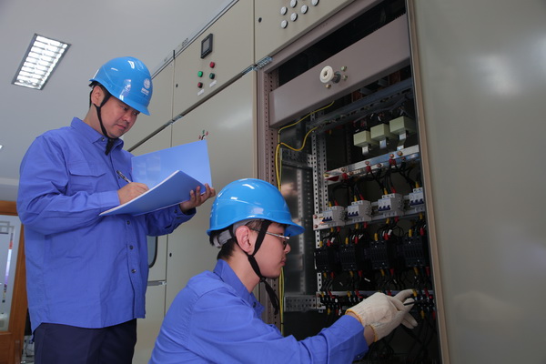 中國電力網(wǎng)訊 8月20日,國網(wǎng)寧海縣供電公司綜合能源事業(yè)部工作人員在寧海順益塑料制品有限公司,為試運行“滿月”的智能配電柜開展“體檢”,通過調(diào)試檢測,查看相關數(shù)據(jù)并進行采集分析。